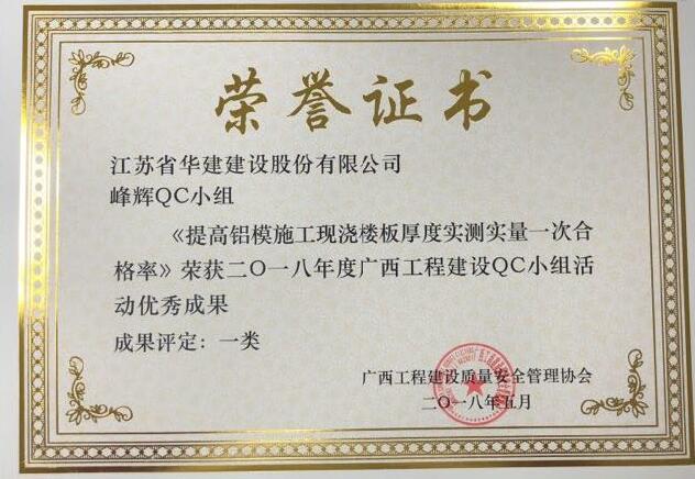 北京公司2項(xiàng)QC成果獲得省級表彰 時(shí)間:2018-06-02 2611 日前,北京公司有2項(xiàng)成果獲得省級表彰。蘋果QC小組“提高天棚輻射管道安裝一次合格率”榮獲天津市2018年度建設(shè)系統(tǒng)QC成果三等獎,峰輝QC小組“提高鋁模施工現(xiàn)澆樓板厚度實(shí)測實(shí)量一次合格率”榮獲2018年度廣西工程建設(shè)QC小組活動優(yōu)秀成果一類成果。