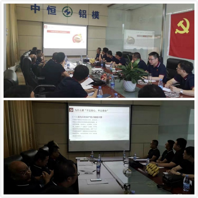 一處支部在中恒鋁膜廠召開支部大會暨“不忘初心,牢記使命”專題學習,會上支部許書記就“不忘初心,牢記使命”的重要意義和內涵給大家上了一堂生動、深刻的黨課。