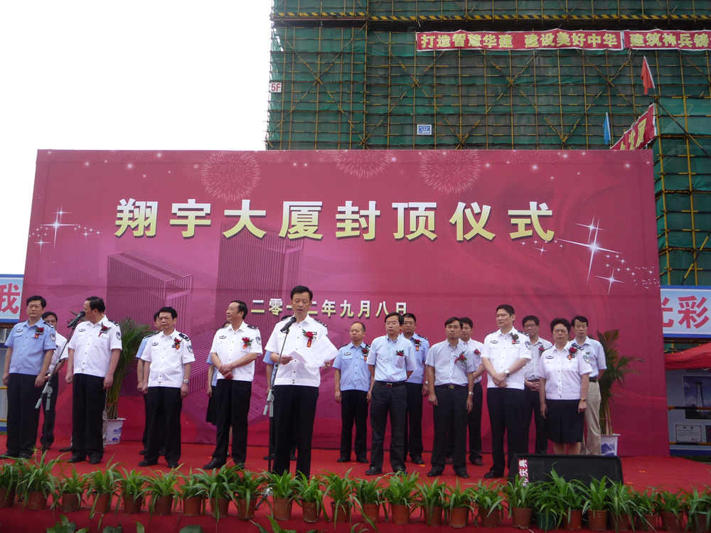9月8日,由蘇北分公司承建的淮安市重點工程——淮安翔宇大廈勝利封頂。淮安市政府副市長、市公安局黨委書記、局長倪興余,淮安市生態(tài)新城工委書記、管委會主任曹華富率領(lǐng)淮安市公安局和生態(tài)新城主要領(lǐng)導(dǎo)出席了封頂儀式。在儀式上項目經(jīng)理匯報了工程施工和管理情況,隨后淮安市倪興余市長作重要指示,他對江蘇華建的施工質(zhì)量和管理水平給予了充分肯定,并代表市政府感謝江蘇華建對翔宇大廈建設(shè)所做出的貢獻,希望江蘇華建繼續(xù)為淮安城市建設(shè)再立新功。在掌聲和鞭炮聲中曹華富書記宣布翔宇大廈勝利封頂。江蘇華建副總經(jīng)理、上海分公司總經(jīng)理楊杰應(yīng)邀出席了儀式。該工程日前已經(jīng)免檢被評為了江蘇省文明工地、淮安市文明工地,目前正在積極申報江蘇省綠色施工工地。