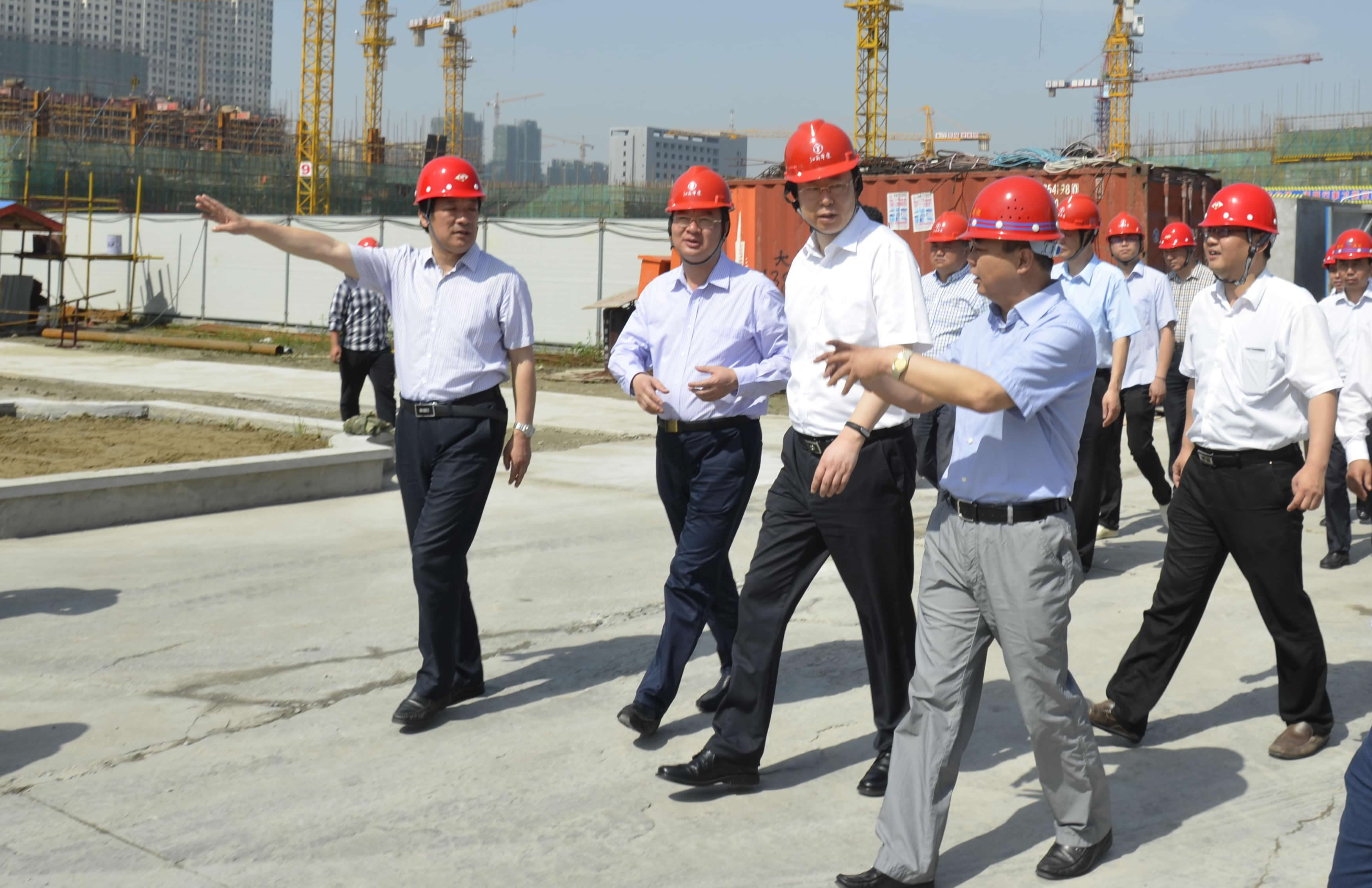 視察由江蘇華建蘇北分公司承建的泰州金融服務區一標段(東組團)項目