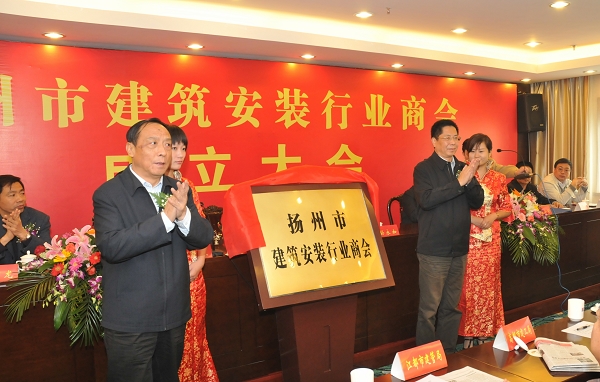 11月3日上午,揚州市建筑安裝行業商會成立大會隆重召開,我市38家建筑安裝企業從此將抱團出擊闖市場。市人大常委會副主任、市工商聯主席、總商會會長孫永如,市政協副主席朱正海出席成立大會,并為商會成立揭牌。市委統戰部副部長、市工商聯黨組書記、副主席、總商會副會長趙振東、市國資委主任黃道龍、市建工局副局長成自勇、市民政局副局長潘小寧,以及各縣市行業主管部門、兄弟商會、協會負責人到會祝賀。