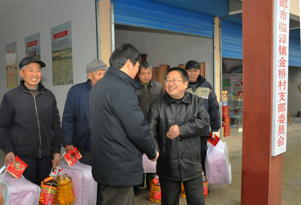 公司領導節前扶貧慰問 時間:2010-02-10 5468 2月10日,公司副總經理程杰一行冒雨赴公司對口扶貧的高郵臨澤鎮金橋村進行走訪慰問。程總參觀了由我公司支持建成的金橋村村民服務中心,了解去年該村的基本情況和今年的發展打算,程總希望金橋村今后要在扶持特色產業上作文章,努力形成自力更生,自我造血的能力。隨后,程總看望了當地低收入貧困農戶,給他們送去節日的問候和慰問品。 金橋村地處里下河地區腹地,位于高郵、寶應、興化三縣交界處。從2008年公司定點扶貧該村以來,公司著力幫扶改善交通環境,發展高效農業,取得一定成績,受到市扶貧辦的肯定。