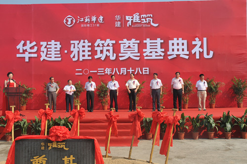 8月18日,由江蘇華建與揚建集團、揚安集團、泰興一建等共同出資開發建設的華建•雅筑項目舉行開工典禮,公司領導陸金龍、吳士茂、錢啟明、陸俊和部分出資方代表及揚州開發區有關領導出席奠基儀式,副總經理兼總工程師、華建地產董事長程杰主持,陸金龍董事長宣布正式開工。