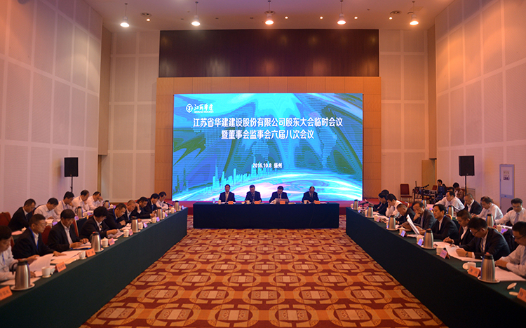 10月8日上午,公司股東大會臨時會議、董事會監(jiān)事會六屆八次會議、董事會六屆九次會議在揚(yáng)州會議中心召開。華建股東單位代表,董事會、監(jiān)事會成員,各區(qū)域公司和各分支機(jī)構(gòu)負(fù)責(zé)人、其他列席人員共50余人參加會議,宗有農(nóng)總經(jīng)理主持會議。