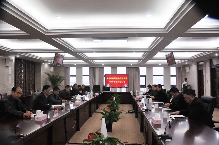 1122日上午,揚州市建筑安裝行業商會在揚建集團會議室召開2016年會長辦公會,10家會長、副會長單位負責人參加會議,揚州市工商聯(總商會)黨組書記陳榮進、會員處處長田德兵應邀參加會議,商會秘書長列席會議。