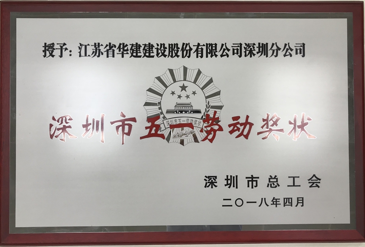 江蘇華建深圳分公司被授予深圳市五一勞動獎狀