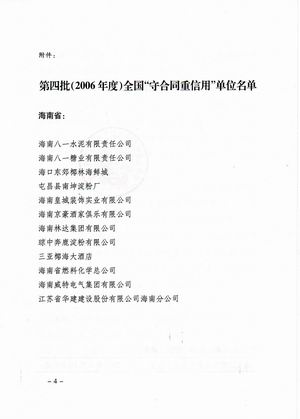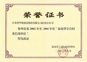 企業(yè)誠信榮譽 時間:2019-01-01 8798 2001-2002年度海口市守合同重信用 2003-2004年度??谑惺睾贤匦庞?/FONT> 2005-2006年度海口市守合同重信用 2002-2004年度海南省守合同重信用 2006年度全國守合同重信用1 2006年度全國守合同重信用2 2006年度全國守合同重信用3 2006年度全國守合同重信用4 2012年度海南省守合同重信用
