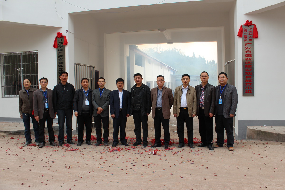 廣安項目指揮部及黨小組舉行揭牌儀式 時間:2014-03-19 5829 2014年3月18日,江蘇華建副總經(jīng)理陸俊、工程部經(jīng)理丁華與江蘇華建副總經(jīng)理、珠海區(qū)域公司總經(jīng)理繆國樞、珠海區(qū)域公司副總經(jīng)理嚴(yán)正濤、總會計師馮喜平一起,參加江蘇華建四川廣安官盛新區(qū)基礎(chǔ)設(shè)施暨美好家園建設(shè)項目指揮部及黨小組的揭牌儀式。