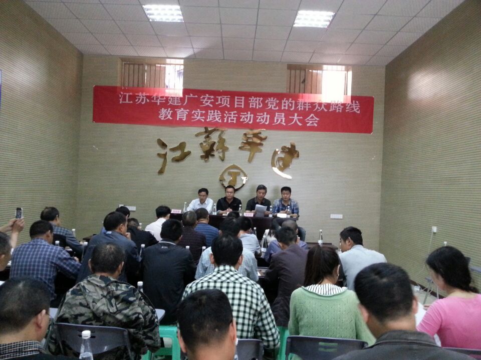 廣安官盛新區建設項目部黨小組召開黨的群眾路線教育實踐活動動員大會 時間:2014-04-17 4925 2014年4月16日,江蘇華建四川廣安官盛新區基礎設施暨美好家園建設項目部黨小組召開黨的群眾路線教育實踐活動動員大會。項目部所有黨員及各重要崗位管理人員共40余人參加會議。會議由珠海區域公司副總經理嚴正濤主持。珠海區域公司副總經理、總工程師周學軍在會上傳達了上級黨委關于深入開展黨的群眾路線教育實踐活動的實施方案和總的要求。珠海區域公司辦公室相關人員向與會者詳細介紹了本次活動所著力反對的“四風”的主要表現形式。官盛鎮黨委副書記馬江林參加會議,并對黨小組相關活動的開展提出了具體要求和指導意見。