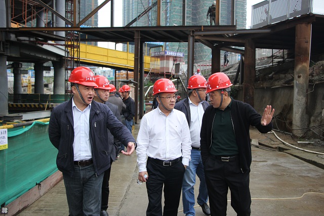 當天上午,陸總一行考察了公司在建的華策國際大廈項目,在項目部會議室聽取了該工程的項目概況和施工難點介紹,并到現(xiàn)場參觀工地。