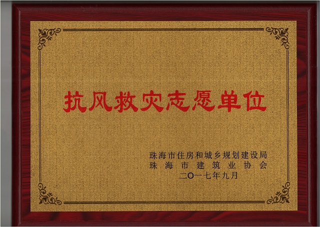 9月29日上午,珠海市住房和城鄉建設局召開“市住建系統救災復產重建總結推進會”,對遭受臺風“天鴿”后全市住建系統進行的救災復產重建工作進行了總結,并對住建系統志愿參與抗風救災單位進行了公布,我公司被授予“抗風救災志愿單位”榮譽稱號。