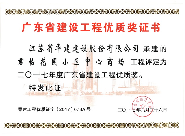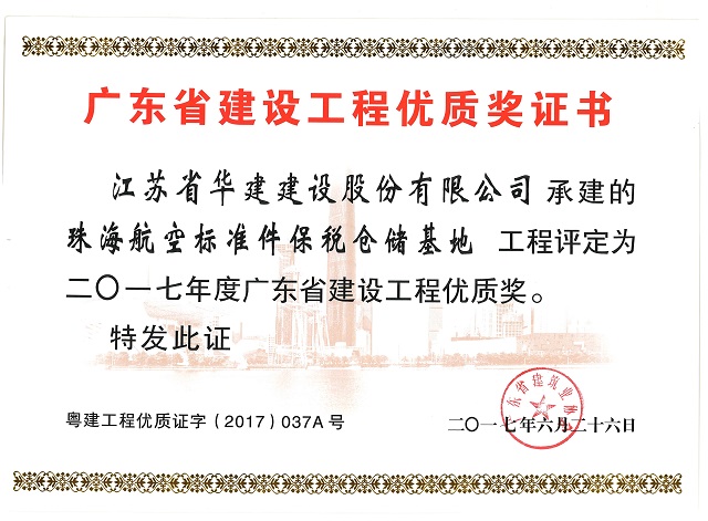 公司榮獲三項2017年度廣東省建設工程優質獎 時間:2017-10-17 3548 近日,廣東省建筑業協會發文公布2017年度廣東省建設工程優質獎名單,我司承建的珠海航空標準件保稅倉儲基地、丹田廣場二期和君怡花園小區中心商場3個項目榜上有名。