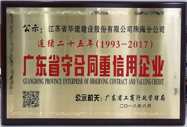公司連續(xù)二十五年被廣東省工商行政管理局表彰為“守合同重信用企業(yè)” 時(shí)間:2018-06-21 2858 近日,珠海公司被廣東省工商行政管理局授予“連續(xù)二十五年守合同重信用企業(yè)”榮譽(yù)稱(chēng)號(hào)。