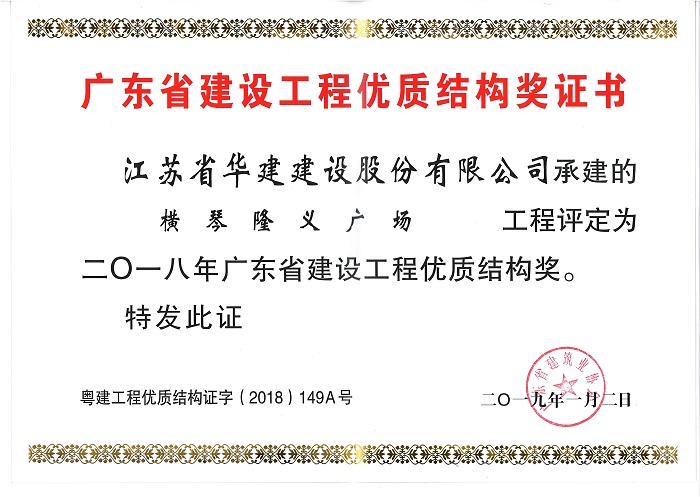 近日,廣東省建筑業(yè)協(xié)會(huì)、廣東省建筑安全協(xié)會(huì)分別發(fā)文表彰了一批優(yōu)質(zhì)結(jié)構(gòu)工程、綠色施工示范工程和安全文明工地,公司3個(gè)項(xiàng)目榮列榜單。其中,陽(yáng)光馬德里、橫琴隆義廣場(chǎng)、華策國(guó)際大廈均被表彰為二〇一八年廣東省建設(shè)工程優(yōu)質(zhì)結(jié)構(gòu)獎(jiǎng),華策國(guó)際大廈被授予廣東省建筑業(yè)綠色施工示范工程稱號(hào),橫琴隆義廣場(chǎng)被評(píng)為2017年廣東省房屋市政工程安全生產(chǎn)文明施工示范工地。