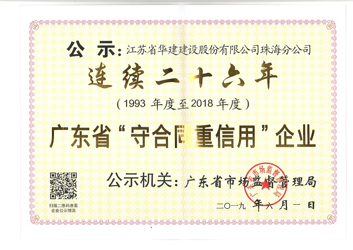 公司連續(xù)二十六年被廣東省市場監(jiān)督管理局表彰為“守合同重信用企業(yè)” 時間:2019-07-01 3360 近日,珠海分公司被廣東省市場監(jiān)督管理局(原公示機關(guān)為廣東省工商行政管理局)授予“連續(xù)二十六年守合同重信用企業(yè)”榮譽稱號。
