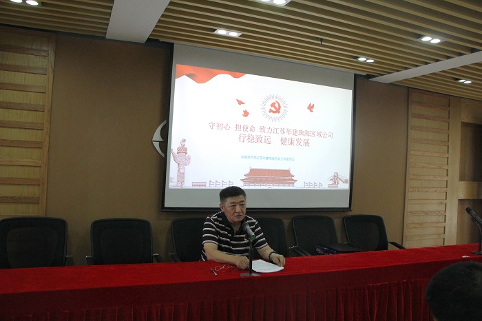 會上,揚州建工控股公司黨委委員、珠海區域公司黨委書記繆國樞同志給大家上了一堂題為《守初心、擔使命,促進珠海區域公司行穩致遠,健康發展》的主題黨課。繆國樞同志從如何理解“不忘初心、牢記使命”、本次主題教育有哪些要求、本次主題教育的根本任務和守初心、擔使命,促進公司健康發展等四個方面和大家交流了學習心得,要求全體黨員尤其是領導干部要做好表率,抓好自身教育,扎扎實實開展好主題教育活動;要求各單位認真查擺發展中遇到的問題并深刻剖析原因,集思廣益尋求解決問題的辦法,推進企業品牌建設,以精益求精的工匠精神打造精品工程,不斷提升工程質量,群策群力,為珠海區域公司行穩致遠、健康發展貢獻力量。