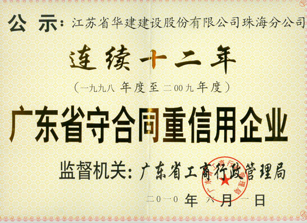 2010年廣東省連續(xù)十二年守合同重信用企業(yè)