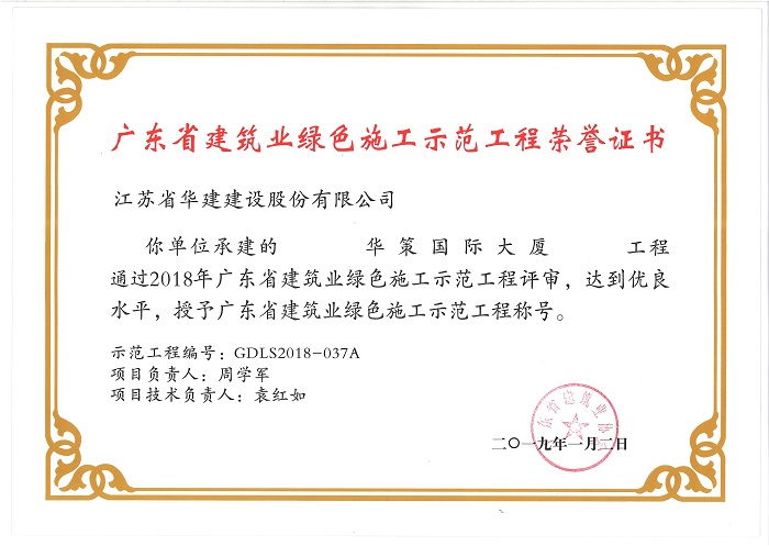 華策國際大廈獲2018廣東省建筑業綠色施工示范工程