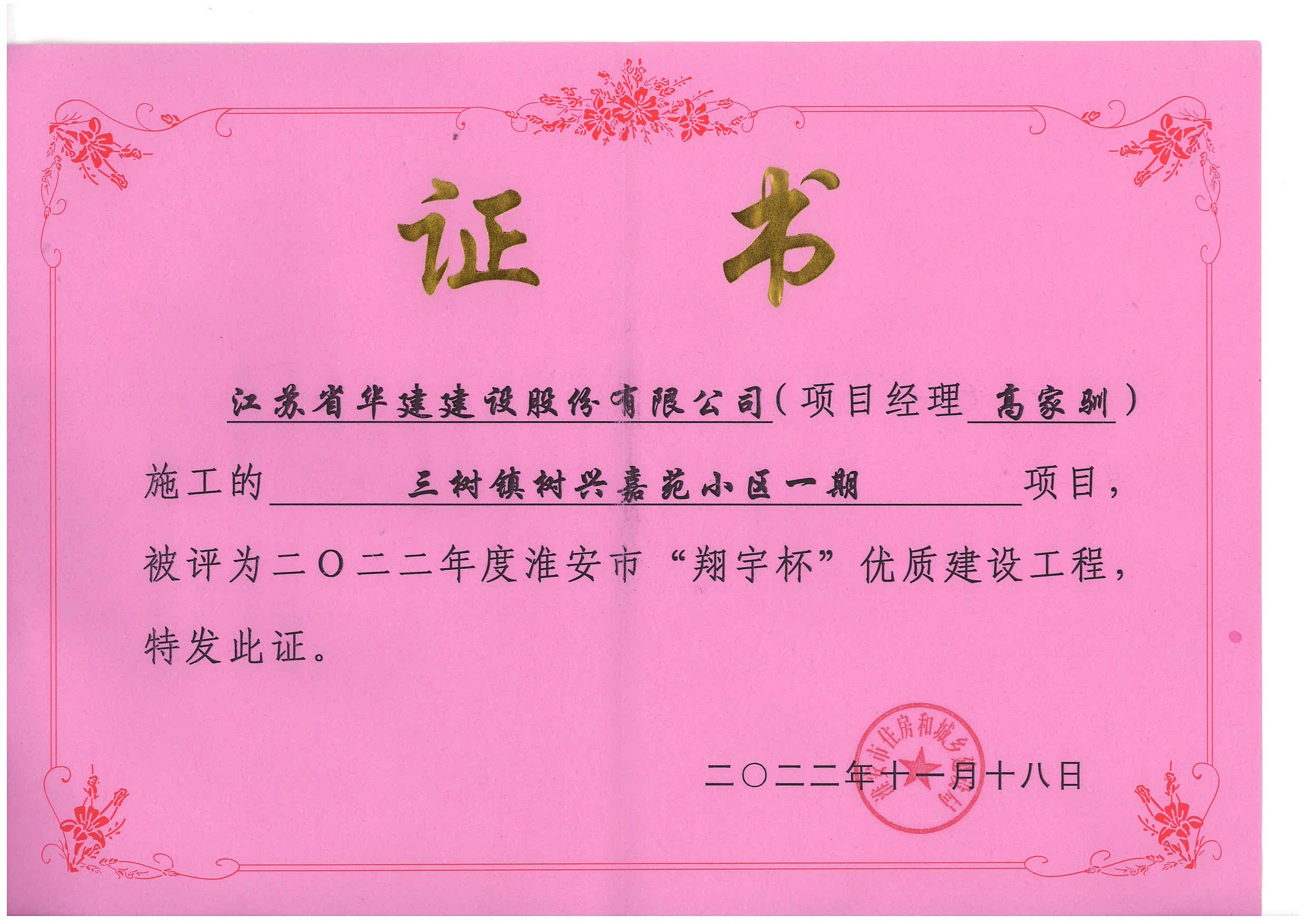 近日,淮安市住房和城鄉(xiāng)建設(shè)局下發(fā)了《關(guān)于公布2022年淮安市“翔宇杯”優(yōu)質(zhì)建設(shè)工程名單的通...