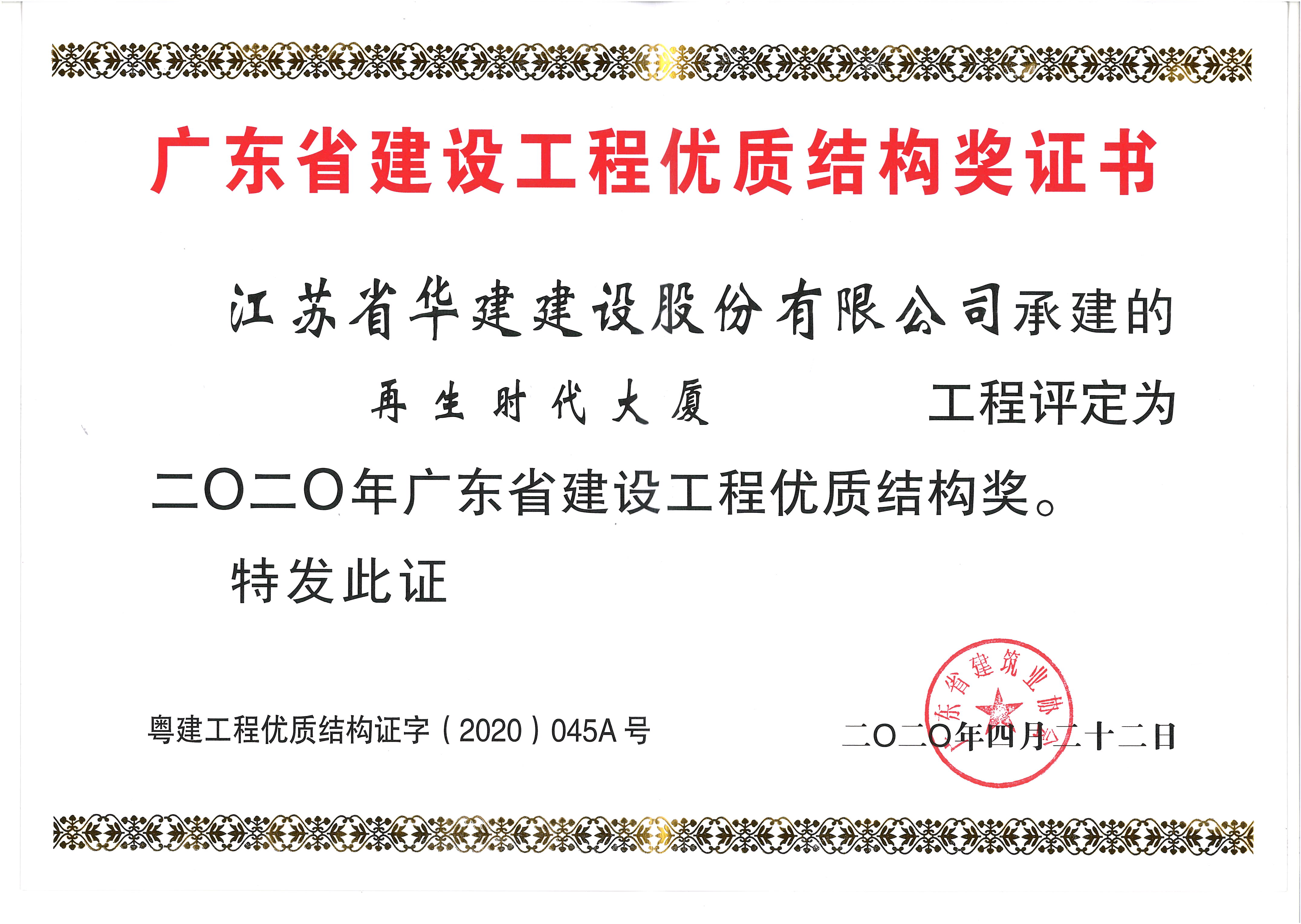 再生時代大廈獲2020年廣東省建設工程優(yōu)質(zhì)結(jié)構(gòu)獎