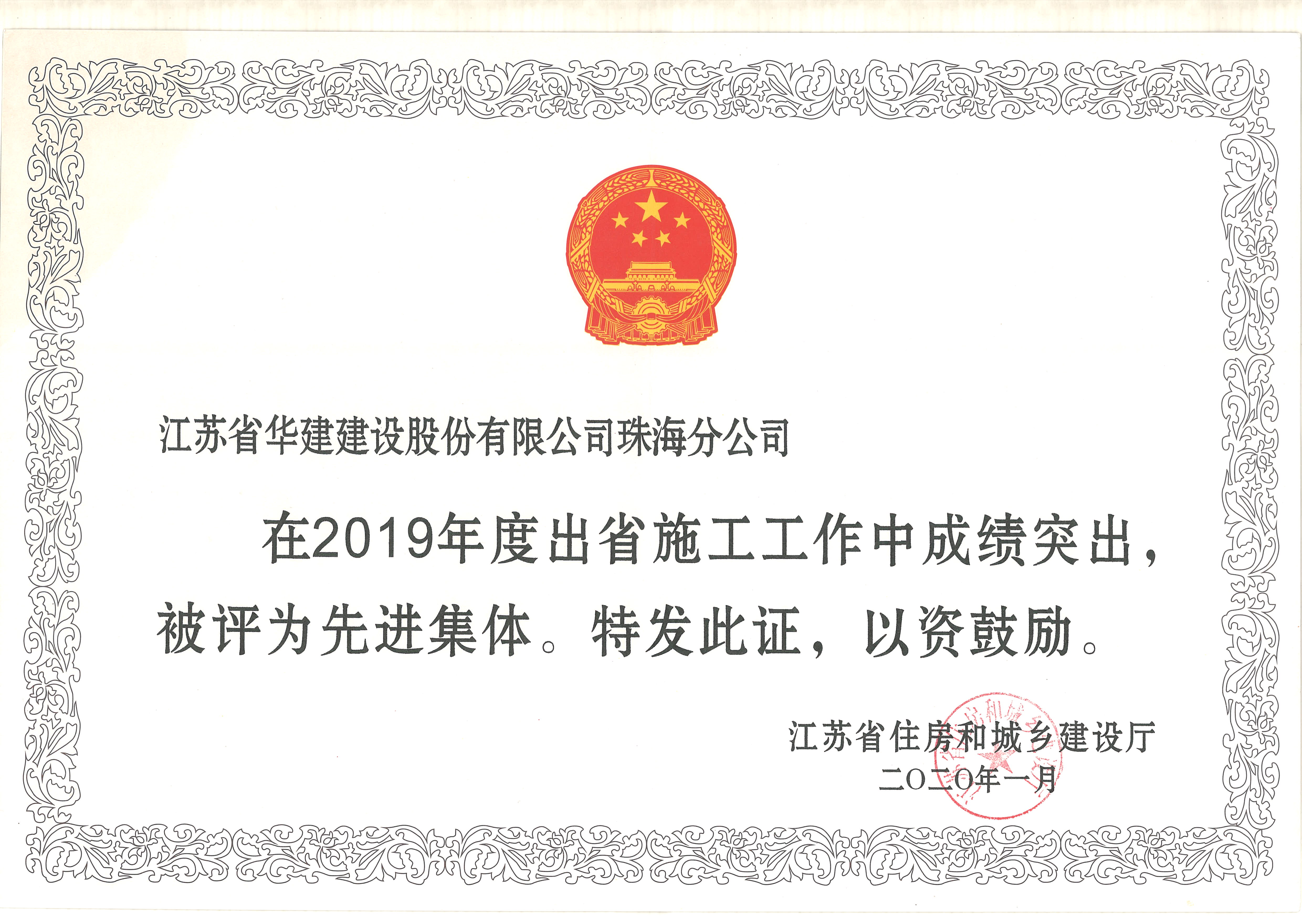 2019年度出省施工先進集體