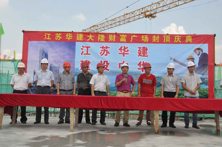 710上午,公司總承包的大隆財富廣場工程勝利全面封頂。惠州大隆企業集團董事長李坤、江蘇華建惠州分公司負責人和機具設備處負責人以及該項目設計、監理等單位領導出席了封頂儀式。