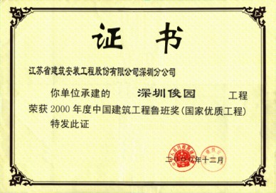 深圳俊園獲98年深圳市文明工地,99年獲江蘇省優(yōu)質(zhì)工程金獎,同年被授江蘇省建筑業(yè)新技術(shù)應(yīng)用示范工程,2000年獲江蘇省“揚子杯”獎,深圳市優(yōu)質(zhì)樣板工程第一名和金牛獎及全國建筑業(yè)最高獎“魯班獎”。