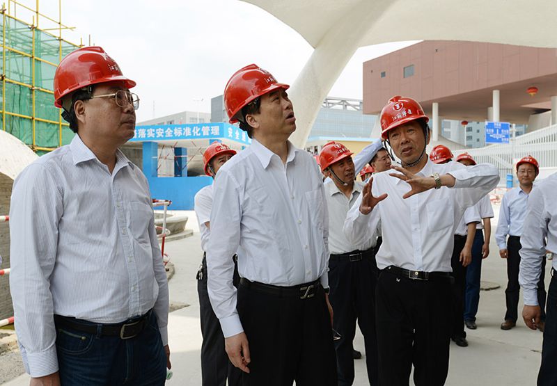 在施工現場,朱市長與項目管理人員一一握手,向大家表示親切問候。在陪同人員引導下,他饒有興致地邊走邊看,認真聽取項目負責人對工程特點、工程進展、工程用材等方面的情況匯報,不時點頭稱贊施工人員的高超水平和施工技藝,當聽到該工程確保“魯班獎”、爭創“詹天佑獎”的創優目標時,他連連表示贊許,并與項目部主要管理班子親切合影。隨后,朱市長一行還來到公司新建成的石巖生產基地看望慰問,參觀了公司安裝處榮譽走廊,勉勵公司要抓住當前良好的發展機遇和發展勢頭,乘勢而上,開拓大市場、多建大項目、爭創大業績,為加快“三個揚州”和名城建設作出更大貢獻!