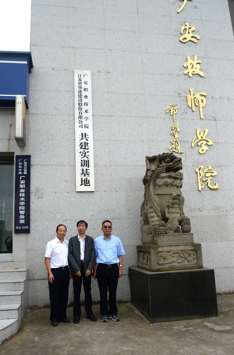 在會議室,職業技術學院院長陳永龍和公司常務副總程杰分別介紹了各自單位的基本情況。學院書記王建平表示,華建是一個航母型的建筑企業,雙方在校企合作共建方面有著共同的理念和深厚的合作基礎,同時學院300多畝的“大學生創業園”項目希望與華建這樣在設計、施工方面有突出實力的企業合作,結合學院理念,突出學院定位,把“大學生創業園”項目盡早建好。陸董事長表示,華建是一家重信譽、講誠信、負責任的企業,只要業主選定了華建,華建一定會全力以赴,不遺余力,真正體現企業的魂:讓業主需要我們。同時陸董事長還歡迎學院優秀畢業生能夠加盟華建,為公司在中西部地區的發展作出貢獻。會上雙方簽訂了“大學生創業園”項目合作框架協議書,就該項目規劃、設計、總包建設、景觀裝修等方面長期合作達成協議。在學院大門口,陸金龍董事長和王建平書記共同為共建實訓基地揭牌。