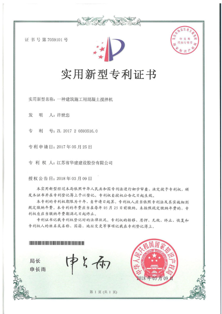 深圳分公司《一種水泵出水管彎頭隔振支架》(專利號:ZL201720811226.9)、《一種能起吊鋼管的機械抓手》(專利號:ZL201720811227.3)、《一種能起吊H型鋼、工字鋼的機械抓手》(專利號:ZL 201720811229.2)、《一種方便卸載的勁性鋼梁支座》(專利號:ZL201720811733.2),珠海分公司《一種剪力墻嵌墻設備安裝預留模具》(專利號:ZL201721459344.4),北京分公司《一種用于房屋建筑施工的懸挑腳手架》(專利號:ZL201720726072.3),上海分公司《一種建筑板材角磨機》(專利號:ZL201720592798.2  )、《一種建筑施工用鋼筋切斷機》(專利號:ZL201720593659.1  )、《一種建筑施工用混凝土攪拌機》(專利號:ZL201720593516.0  )獲得實用新型專利授權。