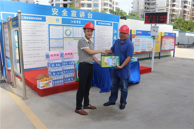 公司工會赴工地進行高溫慰問 時間:2019-06-11 2434 6月10日上午,海南分公司黨總支副書記、工會主席郁遠帶隊走訪慰問海口恒大·美麗沙項目部,檢查項目安全生產情況,并給奮戰在高溫、露天生產第一線的員工送去涼茶、綠豆、人丹等防暑用品,送去企業及工會組織的關懷。 在詳細詢問了工程推進情況和一線職工的工作、生活情況后,郁遠書記囑咐項目負責人要安排好施工現場人員的作息時間,做好降溫消暑保護措施。并叮囑一線的職工要注意人身與施工安全,合理安排工作時間,做到勞逸結合,確保高溫期的安全生產。(辦公室)
